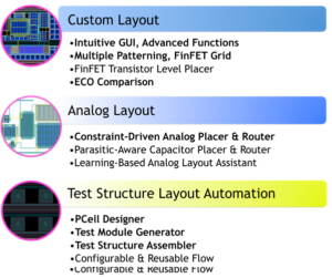Evolved with the experiences and feedbacks of PCell programmers and layout engineers, GOLF provides a visualized integrated development environment (IDE) for parameterized layout design, preview, testing, debug, and documentation on layout directly. It is based on AnaGlobe’s patented highly flexible and reusable hierarchical parameterized layout generator. The OpenAccess (OA) objects of the existing layout can be parameterized directly. More complicated objects such as polygon text, fingers, spiral, and runway are provided. Layout can be composed by geometric operations with object lifetime control. User-defined code (in C++/TCL/PERL/PYTHON) can still be integrated as well.
