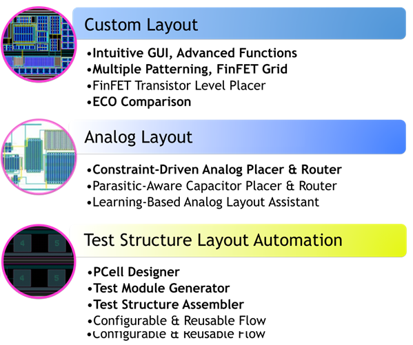LF is a production-proven OpenAccess-based layout platform adopted by world-class companies of fabless design, layout and design service, semiconductor foundriesand flat panel display manufacturers.GOLF features powerful layout viewing and editing functions, intuitive GUI, flexible customization and more extension, with both simplicity in GUI and flexibility in design flows. Its API with C++/TCL/PERL/PYTHON interface (and more on demand) helps users developing a variety of applications. GOLF capabilities facilitate great customization for different applications, such as custom layout functions, analog layout , testchip structure layout automation (from PCell designer to IP block/component and to chip-level layout) or panel-level layout integration and automation.